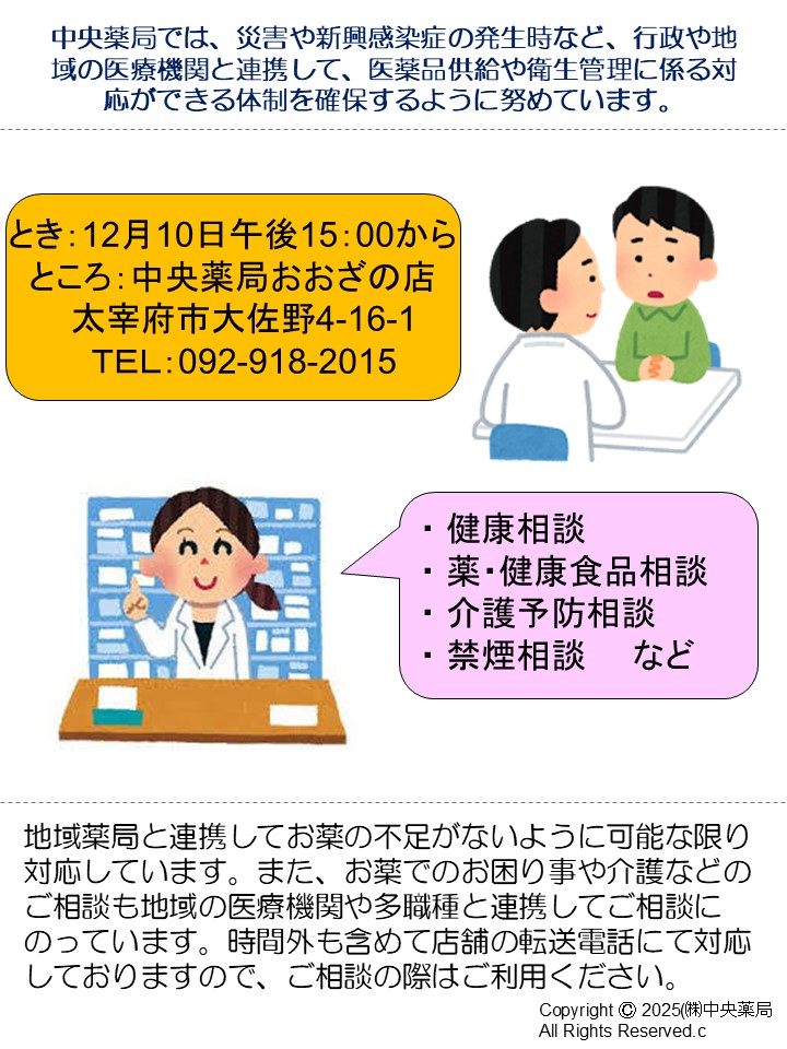 12月の健康相談会は10日(水)に実施します。